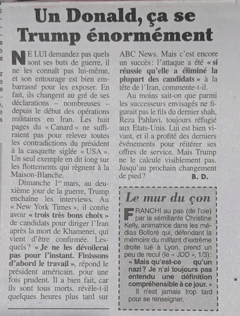 «Et vous me posez cette question ?… Écoutez… je pensais quand même que vous aviez une autre conception de la décence ? Votre fonction ça c’est votre choix ? Mais enfin ça c’est dans la droite ligne… de ce que vous écrivez vous dans votre journal. »